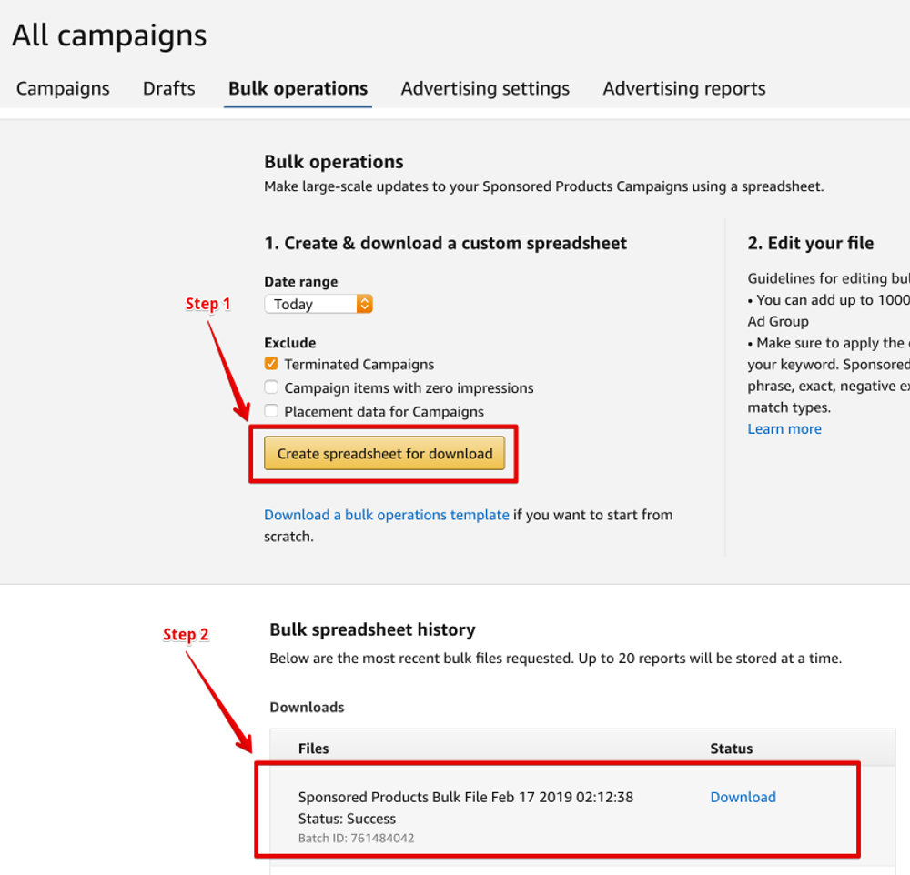 Bulk operations empower busy sellers and agencies to create, manage and optimize their campaigns in bulk and at scale, saving time and manual effort.